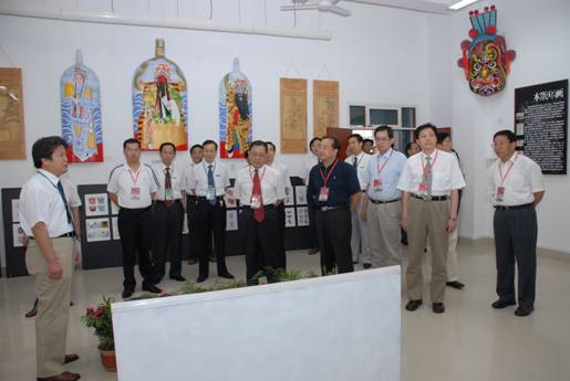 6月4日14时40分,评估专家组的9位专家继续对我院新校区教学基本设施进行考察。 在实验楼101室,专家们考察了宝鸡民间美术展览馆。美术系主任党天才教授详细介绍了展览馆的建设及展出情况,形态各异的马勺社火脸谱、精致的草编工艺品、奇美的根雕桌椅等宝鸡民间工艺品得到了专家的赞许。