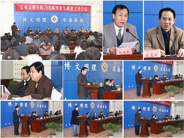 毕业生就业指导服务中心主任李建民通报了2007届毕业生就业工作情况。历史系党总支书记刘波、计算机系党总支书记王明绪、地环系党总支书记王陆军、音乐系党总支书记赵英杰就出外调研就业市场情况和如何做好本系2008届毕业生就业工作在会议上作了发言。(毕业生就业指导服务中心供稿)