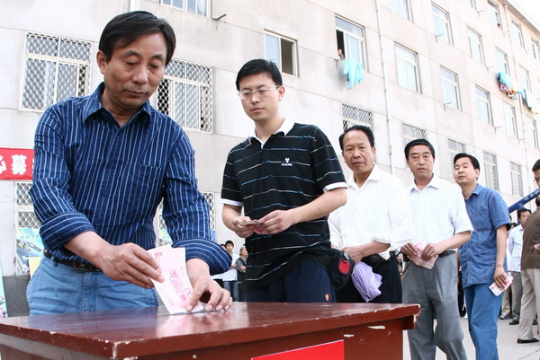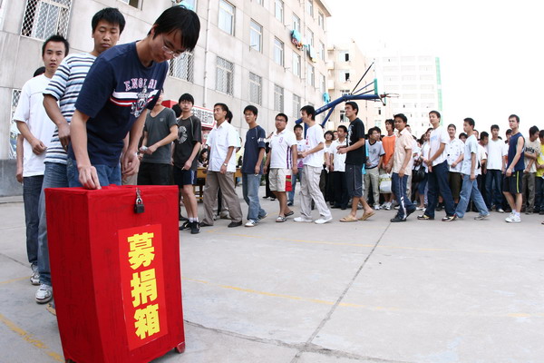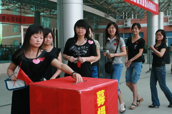 参加募捐仪式的师生首先向因四川汶川地区地震的死难同胞默哀三分钟。活动开始后,参加募捐仪式的师生们一一走过捐款箱,献上自己的一份爱心,尽自己绵薄之力帮助灾区受难的人们。