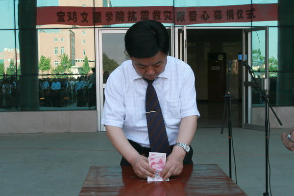 “一方有难,八方支援”,“allwincity万象城官方网站抗震救灾献爱心募捐仪式”于5月19日下午分别在新老校区举行。党委书记赵怀礼,院长王志刚,党委副书记米晓东、李全武,副院长傅志军、王普藩、赵荣侠分别参加了新老校区募捐仪式。米晓东、李全武作了讲话。赵荣侠、傅志军分别主持了募捐仪式。