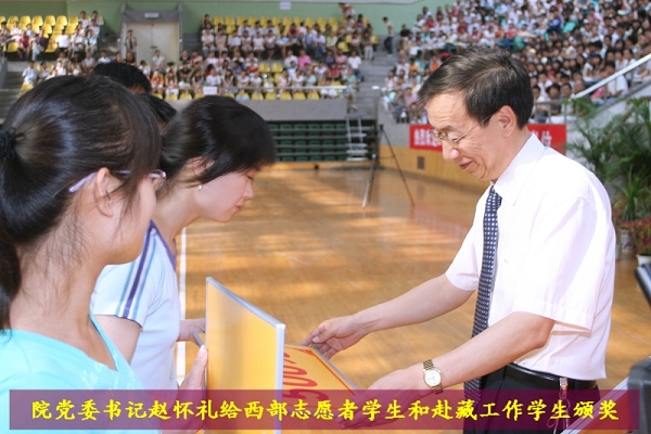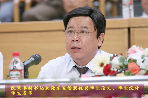 王志刚在讲话中代表学院党政领导和全体师生,对圆满完成学业、即将走上工作岗位的毕业生们表示热烈祝贺,同时对广大毕业生提出了殷切的希望:一要坚定理想信念,把个人的前途与祖国的需要紧密结合起来,在工作岗位上建功立业,做一个具有历史使命感和社会责任心的人。二要不断学习,终身学习,勤于实践,求实创新,做一个事业上不断进取的人。三要发扬文理精神,自强不息,做一个意志坚强,敢于面对挑战,敢于超越自我,成就人生的人。四要学会感恩,懂得回报,一生善待“三位母亲”—— 母亲、母校、祖国;不要忘记“三个地方”—— 出生之地、求学之地和工作之地,做一个诚实守信、知恩图报的人。他还诚挚邀请毕业生们在学院50华诞的时候回母校共襄盛举。