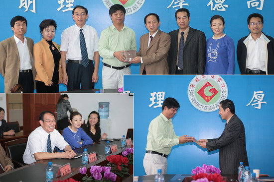 9月20日上午,西安印刷科技学院董事长甄文龙、副董事长吴小萍和院长王见亲一行三人驱车来到我院新校区,为庆祝我院建校50周年捐赠10万元人民币。我院院长王志刚、党委副书记李全武、副院长傅志军等在第一会议室会见了甄董事长一行,并举行了捐赠仪式。