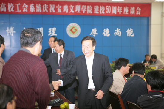 陕西师范大学工会主席李磊、宝鸡市教育工会主席王建国分别代表高校工会和宝鸡市教育工会向我院建校50周年表示热烈祝贺,并对学院50年来,特别是近几年所取得的成绩表示赞赏。座谈中,与会人员还就各高校的工会工作进行了探讨和交流。