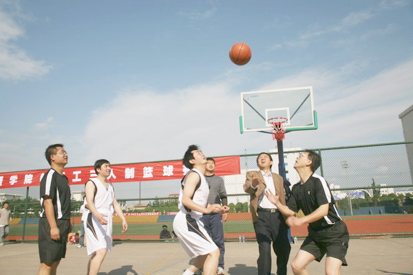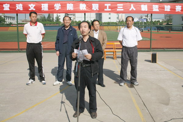 为了进一步推动全民健身活动,增进教职工的联系和友谊,经过较长时间的筹备和周密组织,由院工会主办、体育系分会承办的allwincity万象城官方网站2009年教职工三人制篮球赛于5月15日至17日举行。5月15日下午在学院老校区篮球场举行了开幕式。院长王志刚、党委副书记、工会主席李全武参加了开幕式。开幕式由院工会副主席郭俊理同志主持。