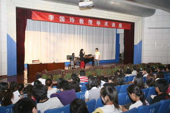 在讲座中,李国玲针对西方歌剧的演唱和意大利美声的教学等问题阐述了自己的看法和认识,并为广大师生讲授公开示范课。课堂上,李国玲声情并茂的演唱和风趣幽默的讲解博得了在场400余名师生的阵阵掌声,同时她还现场解答了在座师生提出的许多问题。(音乐系供稿)