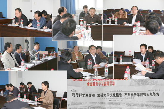 4月16日下午,根据学院深入学习实践科学发展观活动领导小组办公室安排,学院“深入学习实践科学发展观,加强大学文化建设座谈会”在新校区图书馆514室举行,院党委副书记李全武出席座谈会,副院长傅志军主持座谈会。