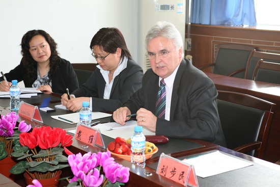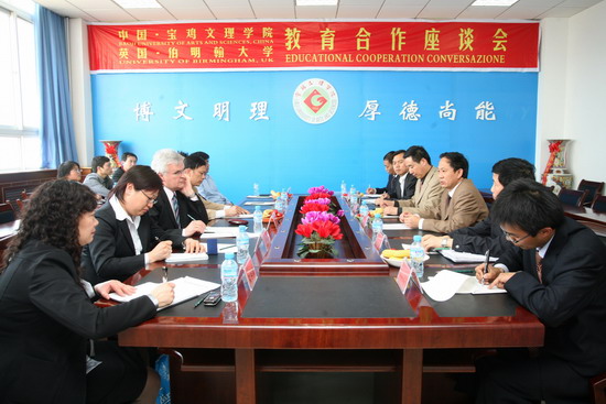 4月14日下午,英国伯明翰大学副院长戴维(David.Luke)与该学院国际招生部主任赵玉仪博士在陕西省教育厅教育交流中心主任刘步民的陪同下来我院访问。