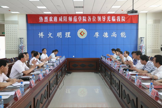 6月3日,咸阳师范学院副院长王瑞一行12人来我院考察访问,我院院长王志刚、党委副书记李全武在甘棠厅会见王瑞副院长一行。