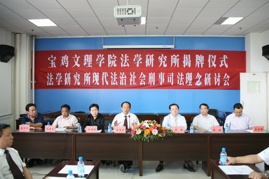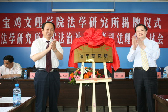 6月4日下午,学院在新校区图书馆514室举行法学研究所揭牌仪式暨现代刑法司法理念研讨会。院长王志刚、宝鸡市人民检察院检察长黄超、宝鸡市中级人民法院副院长崔斌、宝鸡市社会科学界联合会主席张景文等出席会议。法学研究所成员、特聘研究员及兼职研究员和学生代表参加了会议。院长王志刚和市检察院检察长黄超为法学研究所揭牌。副院长赵荣侠主持会议。