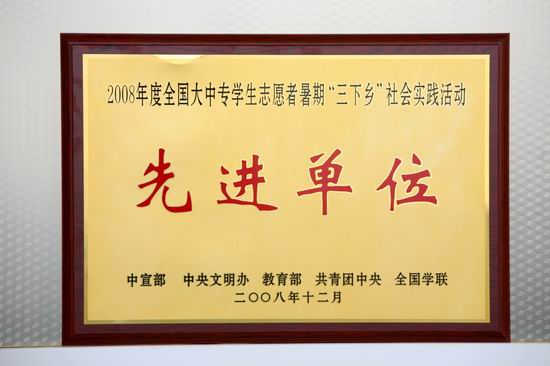 我院荣获2008年度全国大中专学生志愿者暑期“三下乡”社会实践先进单位