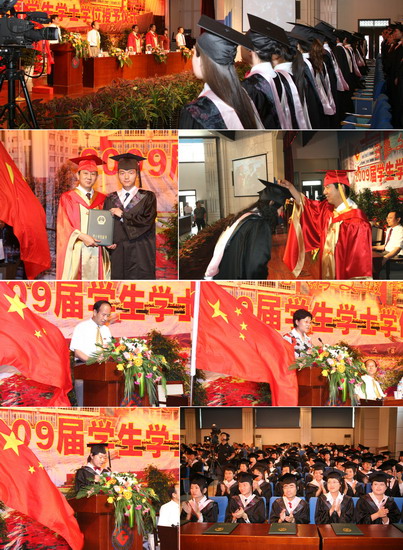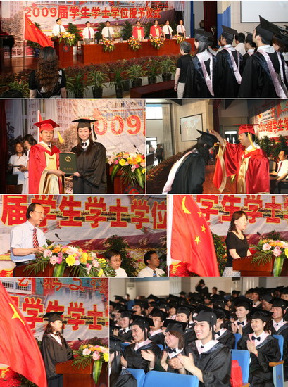 6月11日到6月18日,我院以系部为单位举行了2009届学生学士学位授予仪式。院长、院学位委员会主席王志刚,副院长、院学位委员会常务副主席傅志军,副院长、院学位委员会副主席赵荣侠,教务处处长杨子元,高教研究室主任、教务处副处长田延峰,教务处副处长孙新和各系党总支书记、系主任以及各系其他领导、部分教师、2009届本科生毕业生、部分在校生代表参加了学士学位授予仪式。