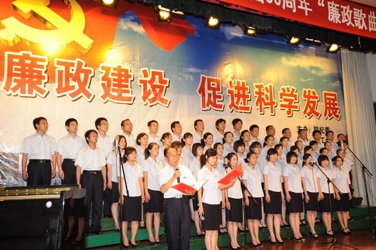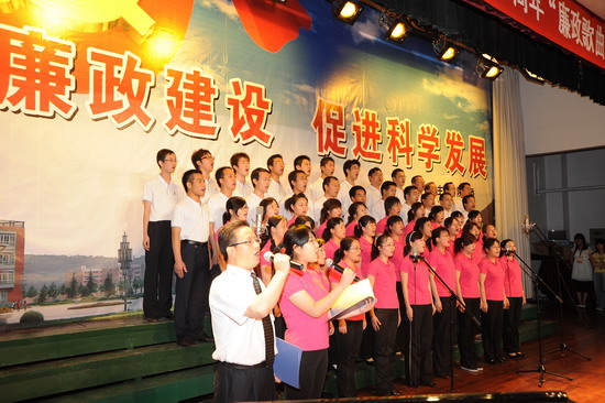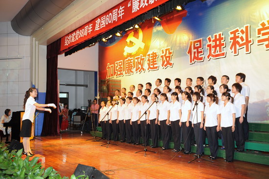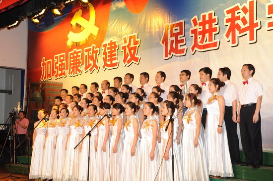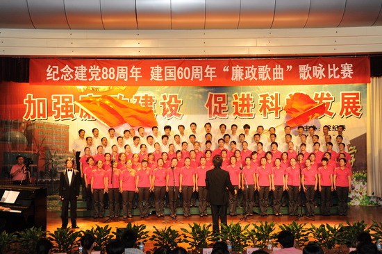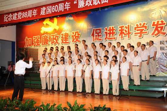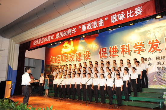 在庆祝中国共产党建党88周年、喜迎建国60周年到来之际,由院纪委、院工会、党委宣传部、院团委举办的以“加强廉政建设,促进科学发展”为主题的 “廉政歌曲”演唱比赛于6月19日下午和晚上在新校区音乐厅举行。有20个党总支代表队参加了比赛。