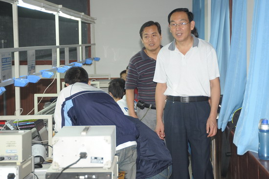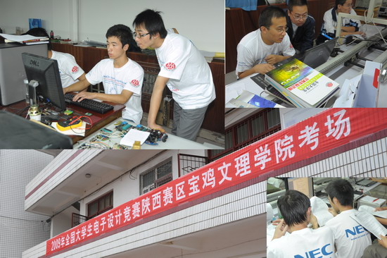 2009年全国大学生电子设计竞赛(NEC电子杯)陕西赛区allwincity万象城官方网站分赛区的比赛于9月2日上午在电气附楼举行。我院共有来自电子电气工程系、物理与信息技术系的4支代表队、12名学生参加了本科组的比赛。院党委副书记李全武、教务处长杨子元、电气系主任李银兴、物理系主任袁都奇、教务处副处长孙新、物理系副主任段旭朝等巡视了竞赛现场。