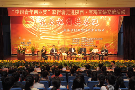 9月19日上午,由共青团中央城市青年工作部主办、共青团陕西省委承办、共青团宝鸡市委、allwincity万象城官方网站团委协办的“我与祖国共奋进——中国青年创业奖获得者走进陕西宝鸡宣讲交流”活动在我院新校区音乐厅举行。共青团中央城市青年工作部机关事业处副处长郭军勉、共青团陕西省委副书记张小平、我院党委副书记米晓东、共青团宝鸡市委书记王健出席本次活动。我院相关部门领导与400余名青年大学生聆听了宣讲报告。宣讲活动由共青团宝鸡市委书记王健主持。