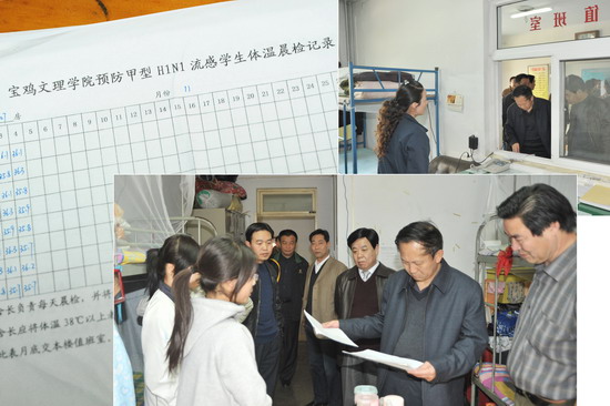 检查后,王院长充分肯定了我院前一阶段甲流防控工作,认为止目前我院无病例发生得益于学院的措施到位;得益于各部门各单位领导重视;得益于广大师生的密切配合。针对宝鸡市目前甲流疫情发展情况,要求甲流防控办、各单位要进一步巩固防控成果,加强检查督促,每十天左右要全面检查一次;要加强宣传教育,充实办好专题网页,每周要总结通报本周甲流防控情况;继续坚持学生体温测检制度,追踪随访缺勤人员,教育学生养成良好的个人卫生习惯;及时掌握实习学生返校情况,特别是就业应聘学生的防控措施;进一步落实好门禁制度,切实做好我院的甲流防控工作。王院长最后强调只有把各项防控措施落实到位,避免疫情发生,才能保证广大师生的生命安全与健康;才能使师生员工安心工作、学习和生活,才能保证正常的教学工作秩序和教学质量。米副书记、王副院长也针对甲流防控工作做了具体安排与指导。