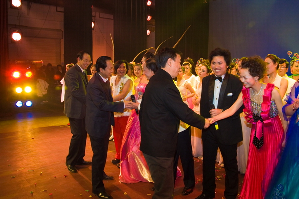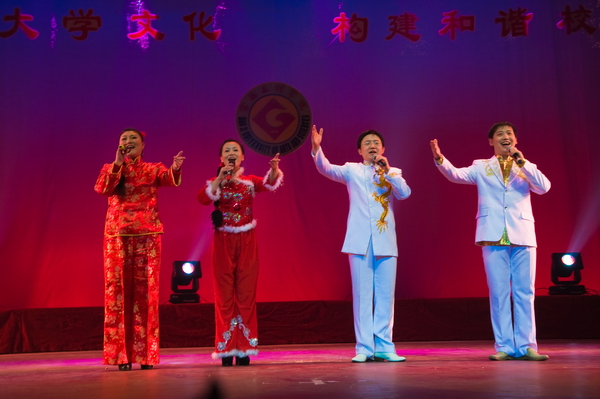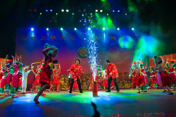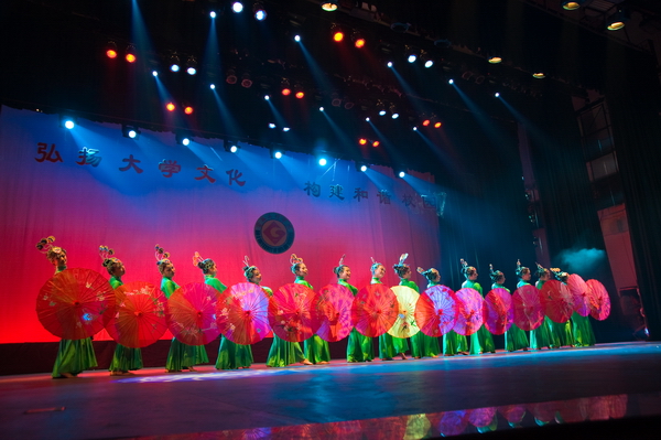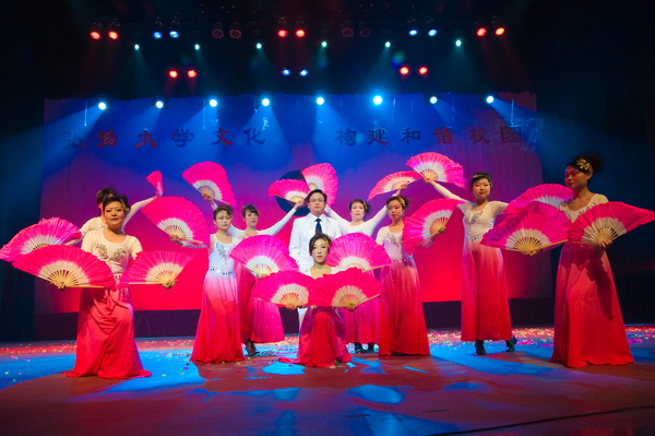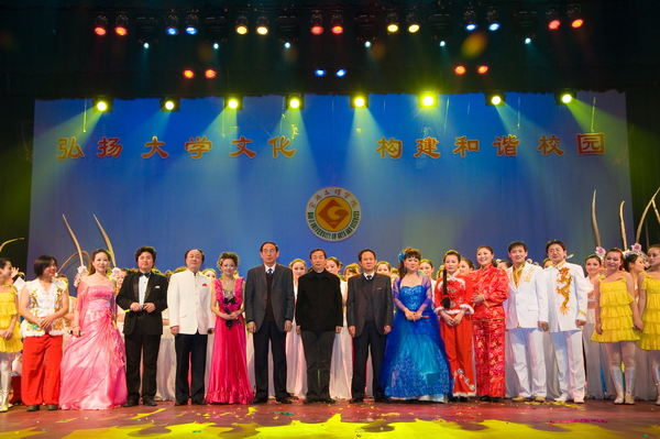 本次晚会由院工会和音乐系分会承办,晚会的主题为“弘扬大学文化,构建和谐校园”。共有14个基层分会的16个节目参加了演出。大家载歌载舞放声歌唱我院的新变化,尽情显示文理人的新风貌。晚会结束后,学院党政领导和工会负责同志与演职人员合影留念。(院工会供稿)