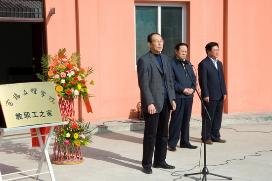 在仪式上,院长王志刚、副院长王普藩为教职工之家揭牌。院党委副书记、工会主席李全武代表学院党政作了讲话。他说,教职工之家的建成是全院教职工工作、生活中的一件大喜事。建设教职工之家是学院贯彻落实科学发展观的具体体现,是加强大学文化建设的一项实际举措,是创建文明校园、构建和谐校园的一项重要内容,对于形成“健康向上、团结和谐”的校园文化氛围具有十分重要的促进作用。同时,他希望院工会积极组织好建家活动,广大教职工积极参与好建家活动,各部门和单位积极支持好建家活动,共同携手把教职工之家建设好、呵护好、发挥好,让教职工之家真正成为教职工向往的精神家园,在学院和谐校园建设中绽放出绚丽的光彩,为学院今年各项工作任务的圆满完成作出贡献。