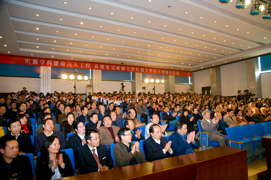 赵怀礼书记首先宣读了国务院学位委员会《关于同意实施2008-2015年新增博士、硕士学位授予单位立项建设规划的通知》(学位[2010]8号)。