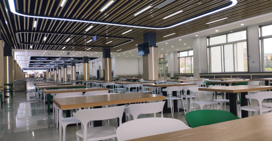 改造后,餐厅内环境明亮、舒适、温馨、文化主题鲜明,餐桌椅全部换新,空调全覆盖,集就餐、学习、休闲、活动功能于一体,使得全校师生有更好的就餐环境。后厨增加摄像头,实现“明厨亮灶”智能监管新模式;更换油烟管道、升级排风系统和油烟净化系统,确保排烟设施安全运行。后厨功能间设置更趋合理,流程更规范,进一步保障万象城师生的饮食安全,切实保证每一位师生的身体健康。