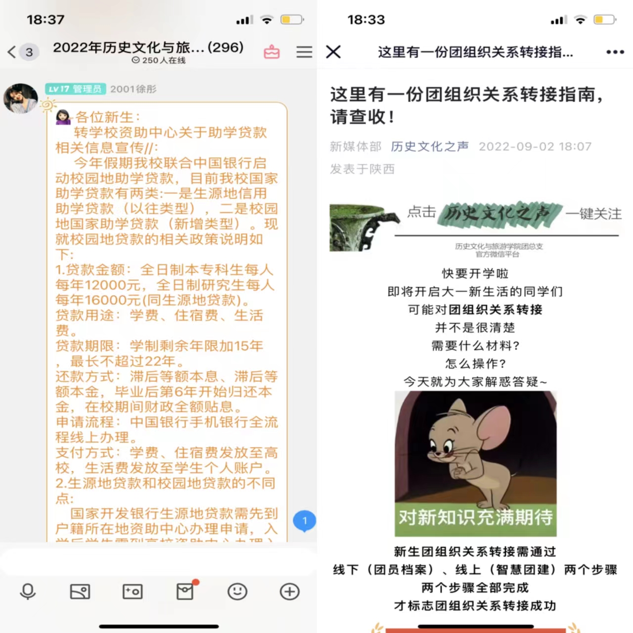 新生入学教育是大学生思想政治教育的重要组成部分,为帮助和引导2022级新生提前适应校园环境,融入大学生活,了解专业方向,找准人生定位,历史文化与旅游学院通过新媒体手段,前置入学教育环节,利用微信公众号、QQ群、微信群、企业会议等途径线上开展了一系列新生入学教育活动。本次入学教育以新生第一课为核心,采用集中教育与分散教育相结合的方式,分三个阶段进行。