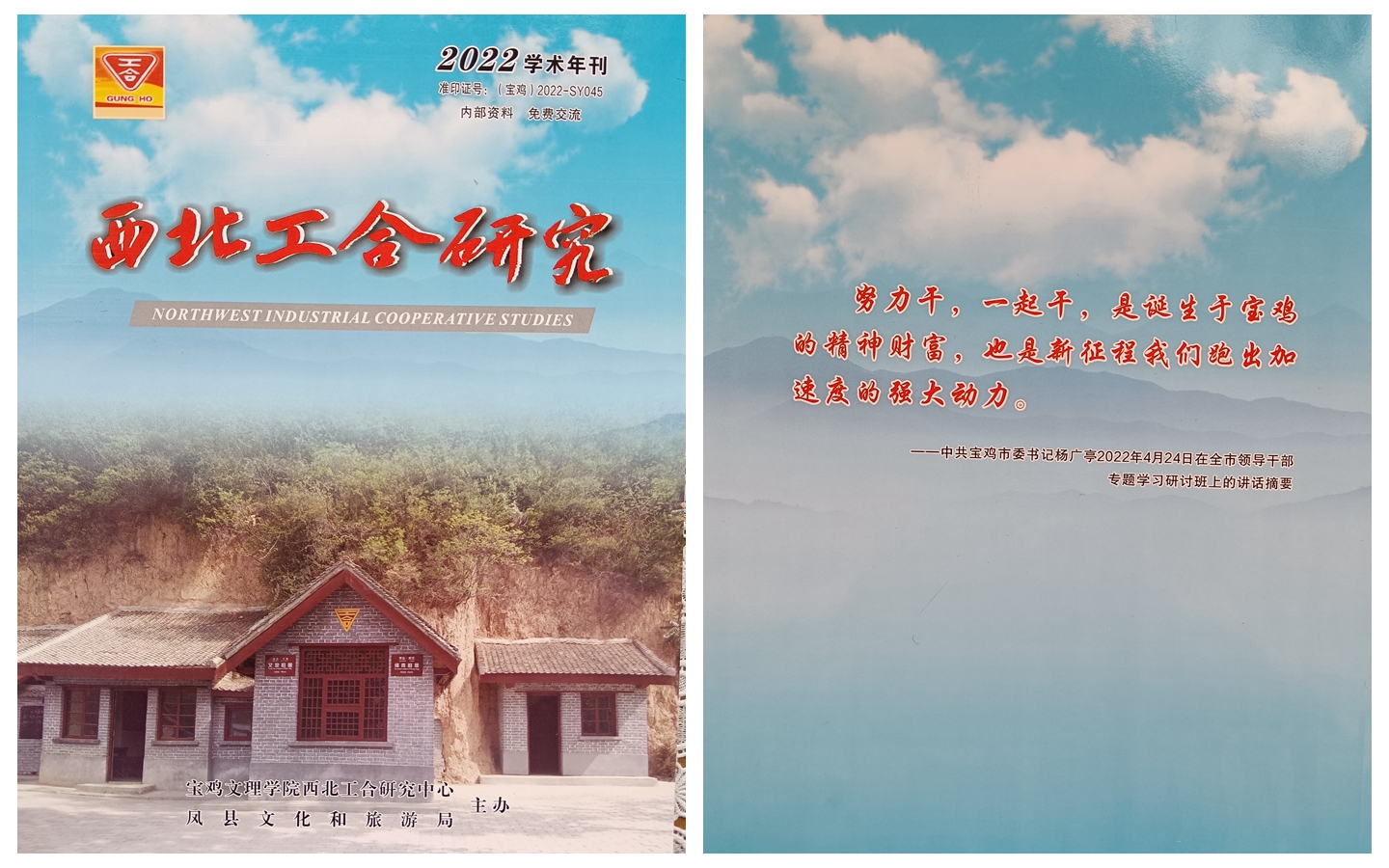 宝鸡是抗战时期的中国“工合城”,工合精神是“努力干,一起干”。中共宝鸡市委书记杨广亭2022年4月24日在全市领导干部专题学习研讨班上的讲话中说,“努力干,一起干,是诞生于宝鸡的精神财富,也是新征程我们跑出加速度的强大动力。”《西北工合研究》年刊的出版,为增进国内外工合研究机构之间的交流提供了一个学术平台,为宝鸡建设关天经济区副中心城市和“一带一路”上的国际化城市提供了必要的智力支持。(外国语学院、西北工合研究中心 文、图/张占勤 审核/李伟)