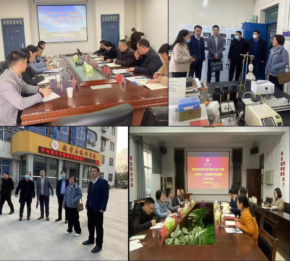 2月22日至25日,化学化工学院党委书记兰佳,副书记王宏江,副院长王冬梅、冯海涛,化学系主任杨美礼,材料化学系主任文平一行6人赴河南洛阳师范学院、南阳师范学院、商丘师范学院调研交流。