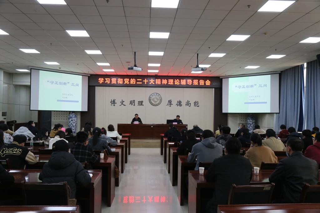 3月15日下午,学工部在高新校区甘棠厅举办了学习贯彻党的二十大精神理论辅导报告会,邀请马克思主义学院何振鹏教授作了专题报告。会议由学工部部长冯森主持。