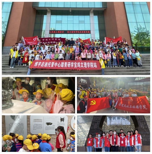 来自麟游县博宇启迪托管中心的83名青少年在学院的组织和志愿者们的带领下,走进宝鸡青铜器博物院,聆听精彩讲解,感受青铜器魅力,品鉴历史的意趣。走进大学校园,欣赏校园美丽春色,参观地质展厅,观摩化学实验,品尝大学美食,体验大学生活。走进炎帝影视基地,同学们一边参观,一边游戏,了解了周秦文化,发扬道德传承。