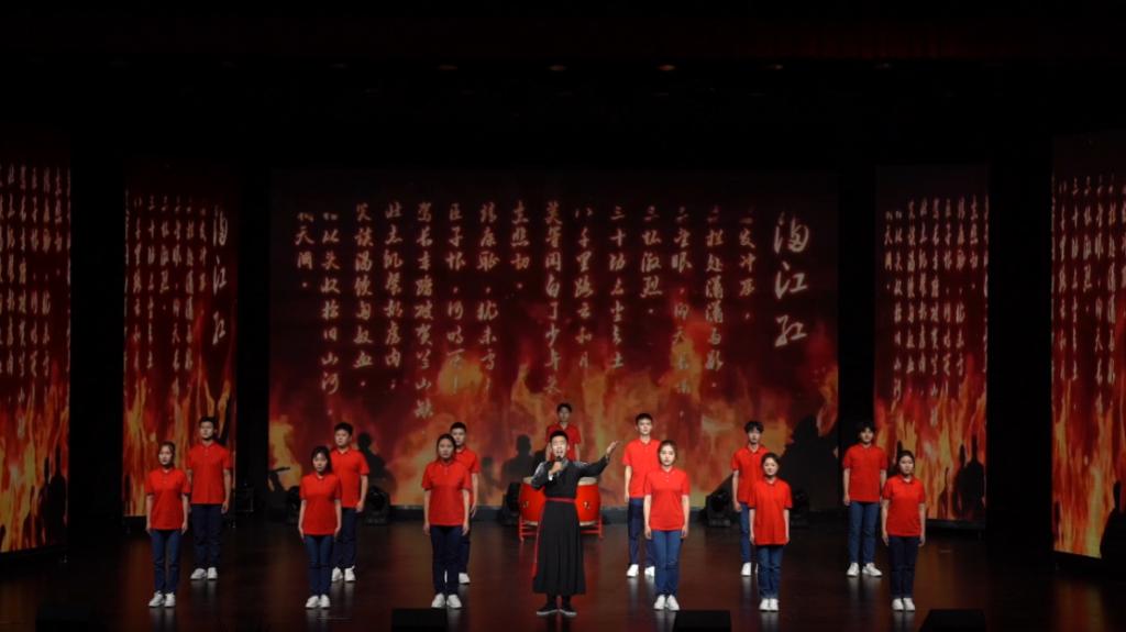 晚会以朗诵为主线,穿插配音、小品、快闪、多语种播报等形式。以时间为轴,精心选择了不同时代的多部经典作品,红色教育主题鲜明。群诵《满江红》慷慨激昂地再现了南宋那段风雨飘摇的岁月;双人朗诵《与妻书》《等待》抒发了大国情怀与小家之爱的绵长之情;《如你所愿》用铿锵有力的声音,诉说着历经磨难后中国的盛世景象;《那些年我们好像很有钱》本色演绎了永远留存于记忆里的大学青葱岁月。最后的快闪环节通过新闻播报、体育解说、电竞解说、直播带货等形式展示了专业多元化教学的尝试与突破。