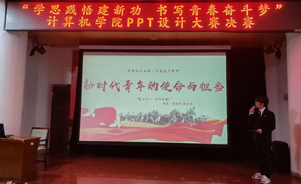 6月2日下午,计算机学院在石鼓校区一号报告厅举办了“学思践悟建新功 书写青春奋斗梦”PPT设计大赛决赛。学校相关职能部门负责人、学院党政领导及部分师生代表共计150余人观看了此次大赛。
