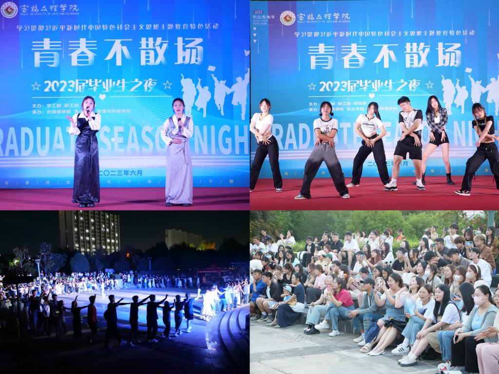 本次活动为了深入学习贯彻习近平新时代中国特色社会主义思想和党的二十大精神,全面落实立德树人根本任务,营造健康和谐、文明有序、积极向上的毕业氛围而举办的,是做好2023届毕业生离校前教育管理服务的系列活动之一,由党委学生工作部、党委研究生工作部和校团委主办,外国语学院、地理与环境学院、音乐学院承办,活动得到了保卫处、后勤管理处的大力支持。这场毕业生之夜活动,不仅让毕业生们重温了校园生活的美好,也让他们感受到了母校的温暖和关怀。相信这段难忘的回忆,将伴随着毕业生们走向未来,激励他们不断追求卓越,为自己的人生目标和理想继续努力。(学工部、校团委、外国语学院、地理与环境学院、音乐学院 文/韩磊 图/李继刚 审核/冯森、郭理想、官莉萍、赵智劳、黄玮)