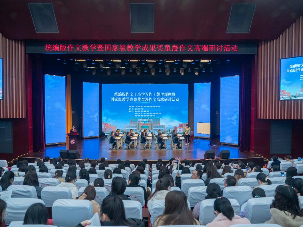 3月17日,统编版作文(小学习作)教学观摩暨国家级教学成果奖童漫作文高端研讨活动在万象城高新校区博文楼报告厅举办。陕西省特支计划教学领军人才、陕西省特级教师、万象城附属学校教师安瑛,宝鸡高新小学年级主任刘欣共同主持研讨活动。