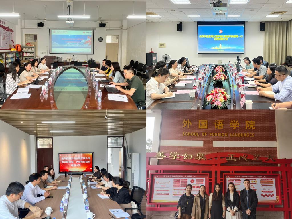 4月21至26日,外国语学院党委书记官莉萍等前往厦门理工学院外国语学院、集美大学外国语学院、闽南师范大学外国语学院、泉州师范学院外国语学院、福建译国译民集团,围绕基层党建、人才培养、英语师范认证、创新创业、学生管理等工作进行调研交流、访企拓岗。