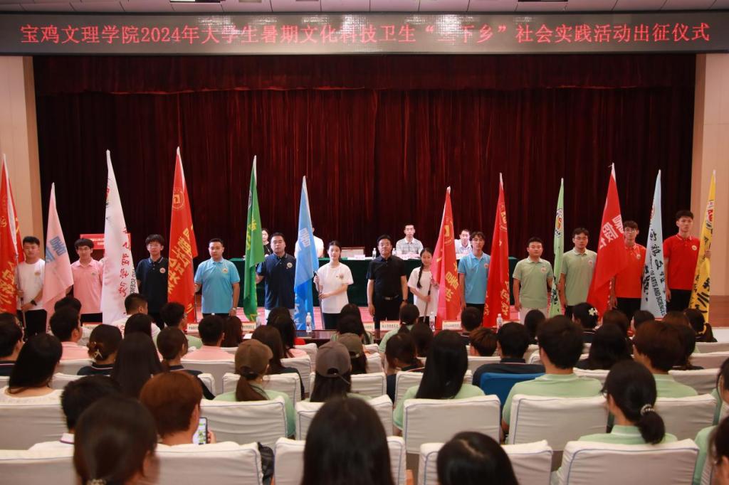 7月3日,学校在高新校区音乐厅举行了2024年大学生暑期文化科技卫生“三下乡”社会实践活动出征仪式。校党委副书记韩干校出席活动并为各校级实践团队授旗,校团委副书记杨昕主持出征仪式。