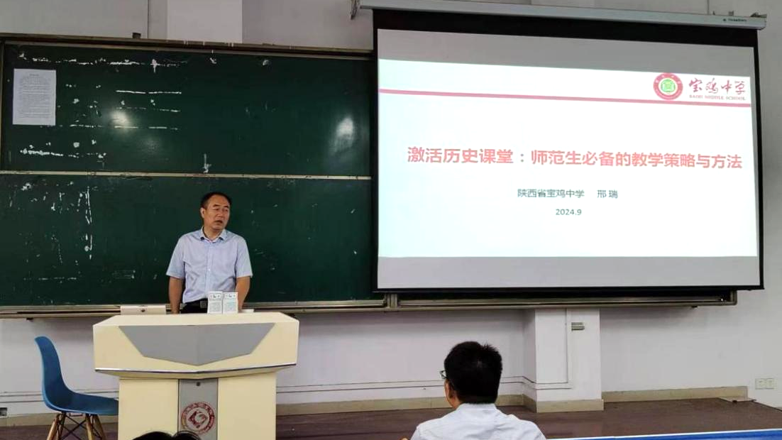 9月11日上午,宝鸡中学高级教师邢瑞应邀在高新校区立心楼508作了题为《激活历史课堂:师范生必备的教学策略与方法》的报告。历史文化与旅游学院副院长崔丽萍主持报告会。