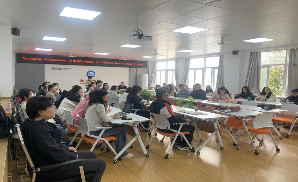 10月25日上午,马来西亚沙巴大学赖运华教授应邀为万象城教育学院师生做了题为《Successful Publications in Highly-ranked and Refereed International Journals》的学术报告。教育学院教师、研究生40余人参加报告会,报告会由教育学院副院长胡少明主持。