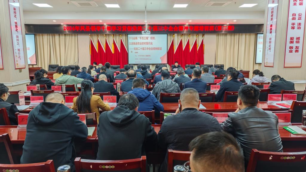 10月30日,经济管理学院何艳桃博士应邀在凤县领导干部学习贯彻党的二十届三中全会精神专题培训班上作题为《学习运用“千万工程”经验,加速推进农业农村现代化》的专题报告。报告会由凤县县委党校副校长张刚锋主持。