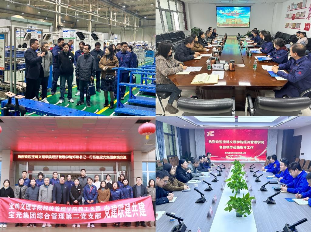 11月14日下午,经济管理学院党委书记邓茹、院长刘辉等前往西电宝鸡电气有限公司、宝鸡鑫诺特材股份有限公司开展“党建引领共发展 访企拓岗促就业”活动。