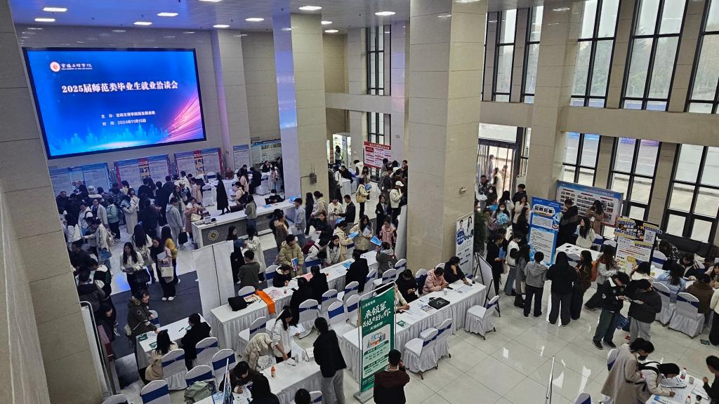 为进一步落实《陕西省教育厅关于开展秋季校园招聘月系列活动的通知》精神,全力推进2025届毕业生高质量充分就业,11月15日,学校联合江苏省南京市金职人才携9所知名学校、洛南县人力资源和社会保障局、延安衡水中学等近50家用人单位在高新校区博文楼一楼大厅举办了2025届师范类毕业生专场就业洽谈会。