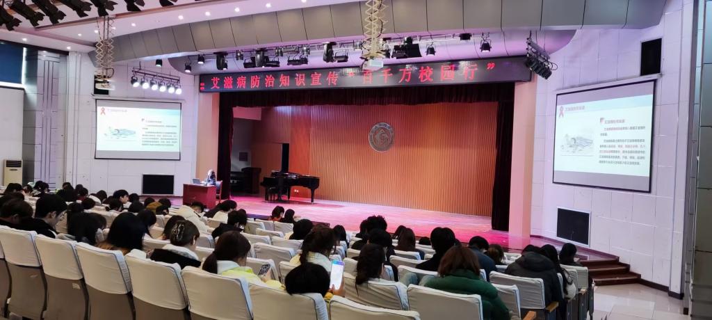 开展“艾滋病防治知识宣传百千万校园行”培训活动。11月21日,邀请宝鸡市疾病预防控制中心、高新区公共卫生服务中心在高新校区音乐厅举办了“艾滋病防治知识宣传百千万校园行”培训活动。市级艾防专家从艾滋病流行现状、对青少年的危害、预防管理等方面为同学们作专题讲解,结合具体数据及案例讲解了艾滋病的发展、主要传播途径、预防措施及自愿咨询检测治疗机构信息,以及性病相关防治知识。
