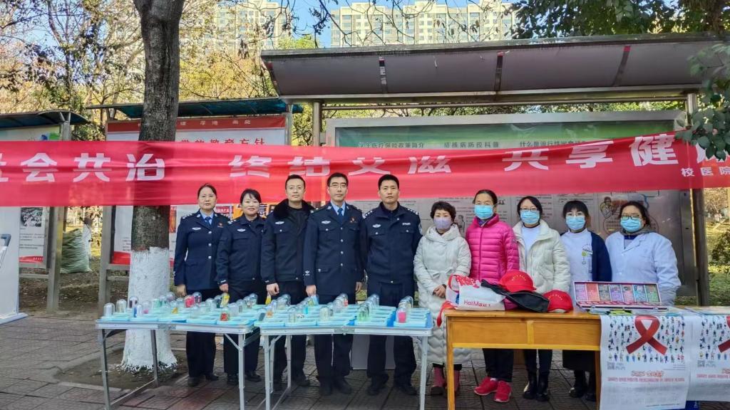 开展“世界艾滋病日”主题宣传教育活动。11月29日,校医院联合高新区禁毒办、陈仓区禁毒所在石鼓、高新校区开展艾滋病预防与控制知识宣传活动。活动现场悬挂“社会共治,终结艾滋,共享健康”等主题宣传横幅、海报,摆放预防艾滋病知识的宣传展板,向过往师生们分发防艾知识手册、健康教育处方、活动小礼品,讲解艾滋病的传播途径及预防措施,普及防艾相关知识,增强防御艾滋病的意识与技能。