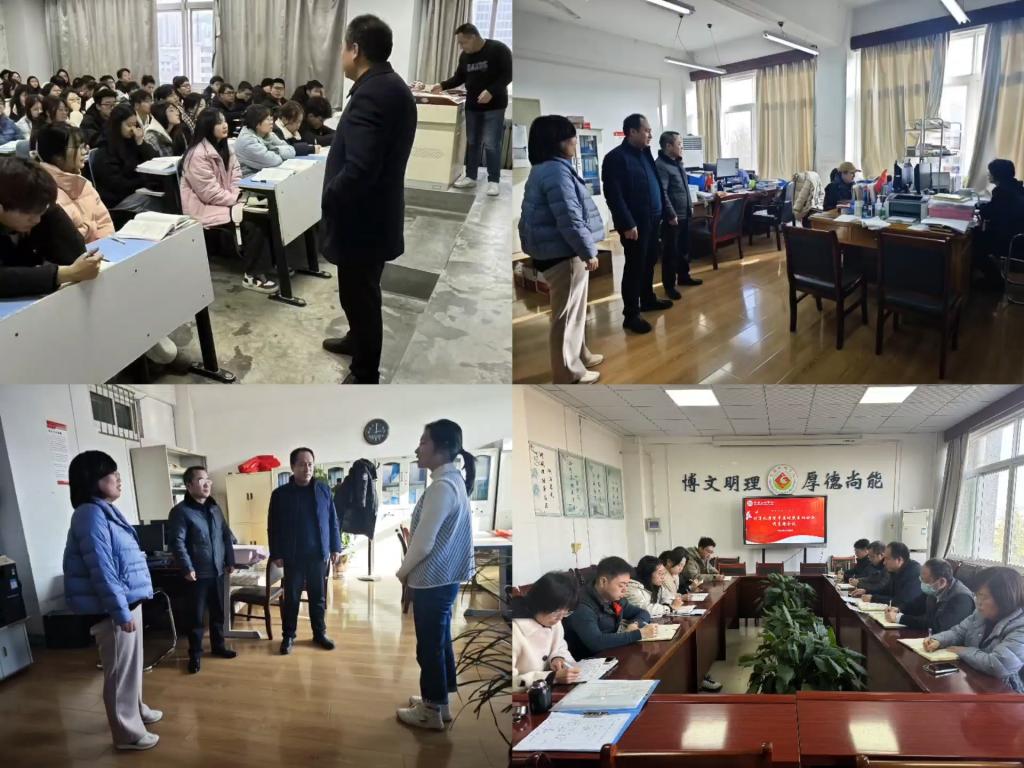 凝心聚力查教风,教学相长创课堂。学院党政领导根据《计算机学院期中教学检查方案》,对各教研室试卷规范存档、集体备课、相互听课、新进教师传帮带、实践教学和毕业论文等情况进行了检查,期间每天都有一名领导带队走进课堂,认真听课,检查教师上课情况,课间与教师认真交流,谈论对教育教学的心得体会。通过检查,学院的教育教学更加规范,教师开展教学活动更加认真。
