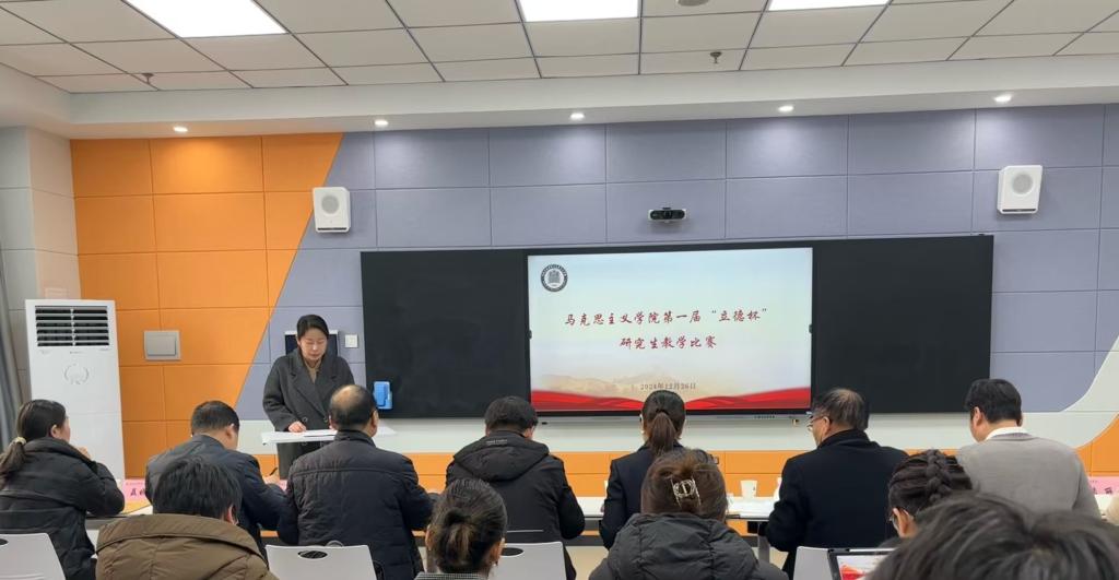 12月26日,校党委宣传部、研究生院、马克思主义学院和政法学院在高新校区博文楼1604多功能教室举办了第一届“立德杯”研究生思政课教学比赛。宝鸡市政府教育副总督学王娇、宝鸡市委党校副校长董西科、陕西机电职业技术学院马克思主义学院院长王康、宝鸡职业技术学院马克思主义学院副院长杨彦科、金台区委党校副校长赵建林和万象城马克思主义学院聂晓静副教授担任比赛评委。比赛由马克思主义学院实践教研室主任陆贝贝主持。
