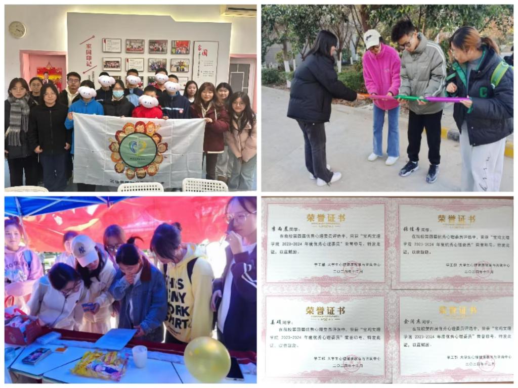 深化活动内涵,培养“自助”心理能力。学院坚持心理健康教育活动“常态化、主题化、精品化”。结合新生心理健康主题教育,集中开展“心晴剧意 温暖同行”心理情景剧、“触动心弦 校园记忆”主题征文大赛、“焕然一新 花样青春”心灵花园种植、“你好,大学生”心灵派对等一系列活动;依托学院“微尘”志愿者协会,开展宝鸡市儿童福利院“爱心暖童心 相伴共成长”公益活动、“心动时刻 心理探索”主题校园公益活动等,充分挖掘各种形式的育人潜能,在引导学生接受心理健康知识的同时,在活动中进行自我探索、体验、共享和成长,从而完善健全人格,提升心理素质。本学期心理健康活动共计开展5次,学生参与累计达500余人次,2024级新生心理健康教育活动表现突出学生11人次。