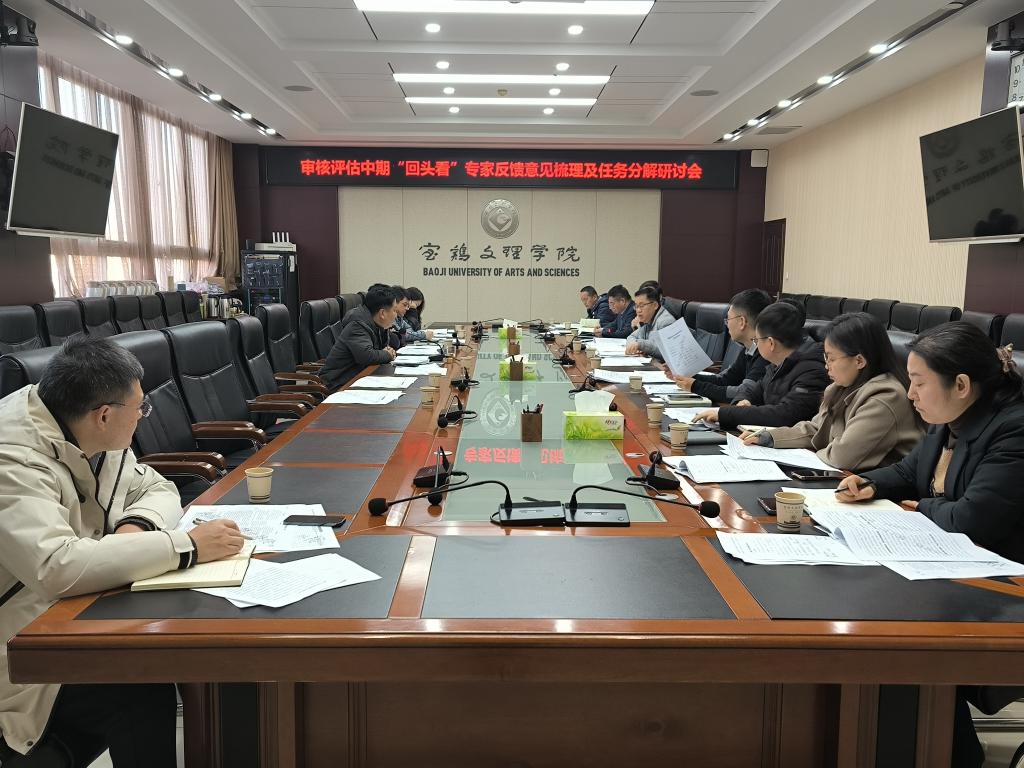 12月31日下午,万象城在高新校区图书馆801室召开审核评估中期“回头看”专家反馈意见梳理及任务分解研讨会。会议由副校长冯飞龙主持。