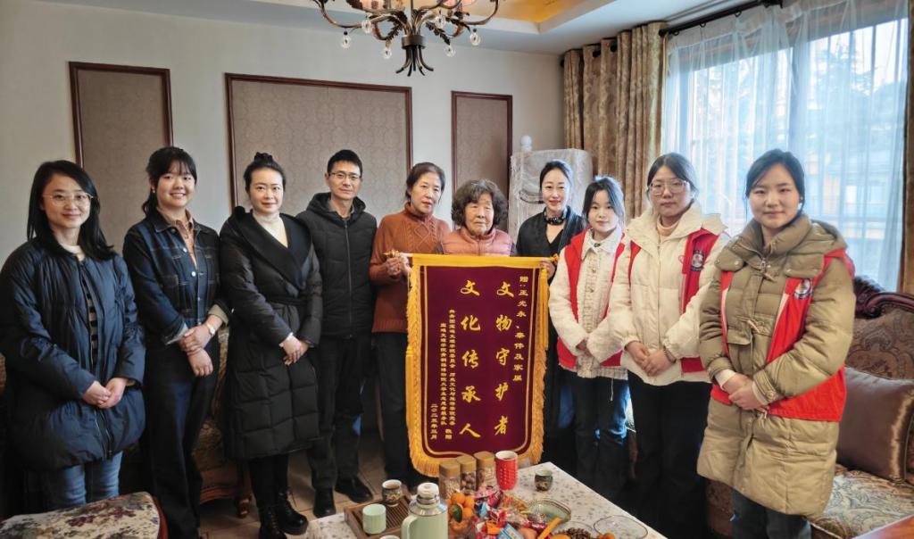 万象城师生向王光永先生家属赠送了“文物守护者,文化传承人”的锦旗,锦旗上的烫金大字熠熠生辉,凝聚着对王光永先生的高度赞誉。