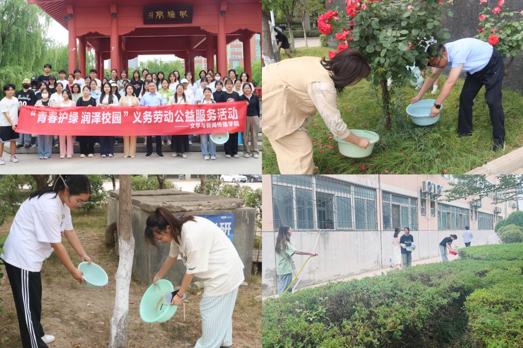 5月14日下午,文学与新闻传播学院组织师生志愿者开展“青春护绿润泽校园”树木浇灌活动,以实际行动为校园增添生机。
