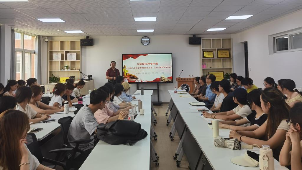 赵洁以《中央八项规定改变中国》为题,从落实中央八项规定精神的实践历程、落实中央八项规定精神的巨大成效、落实中央八项规定精神的经验启示、推动作风建设走向纵深的核心要求四个方面进行了详细阐述。报告内容丰富、逻辑清晰、深入浅出,既有理论高度,又紧密联系实际,一个个生动的案例和一组组详实的数据,全面客观展示了中央八项规定精神所带来的深远影响,无论是党风政风的明显改善,还是社会风气的积极转变,都彰显了中央八项规定精神的强大生命力和实践伟力。
