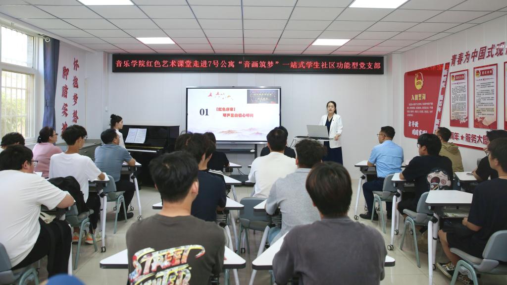 学工部、研工部、校团委、音乐学院等单位负责人,高新校区7号公寓“一站式”学生社区“音画筑梦”功能型党支部师生党员代表等30余人参加了活动。(音乐学院党委 文/孙武 图/李继刚 审核/黄玮)