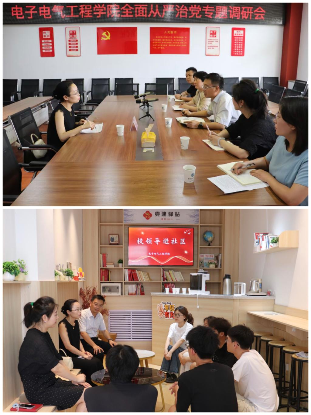 6月18日下午,副校长凡明锦前往电子电气工程学院调研全面从严治党和“一站式”学生社区建设情况。